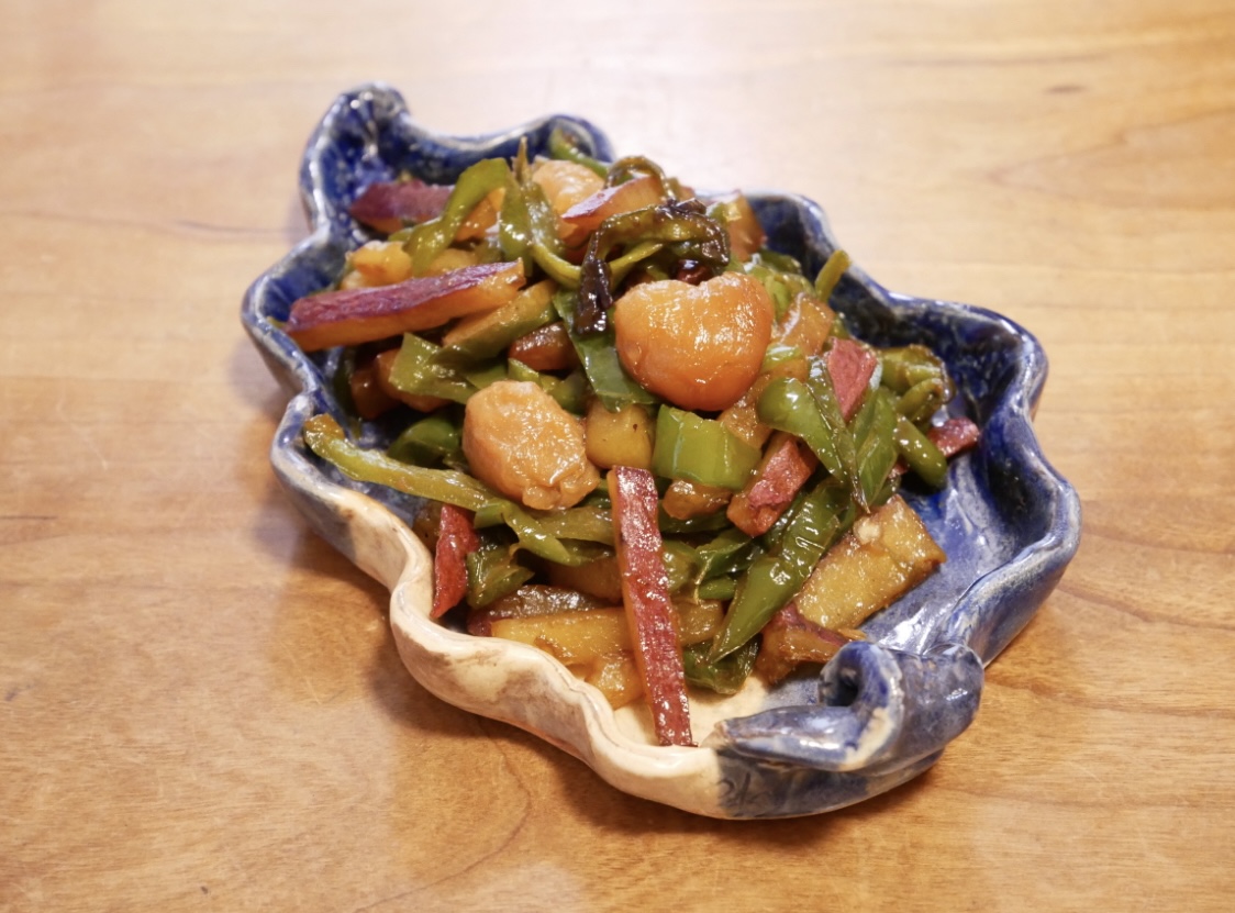 さつま芋とピーマンと龍眼肉の炒め物