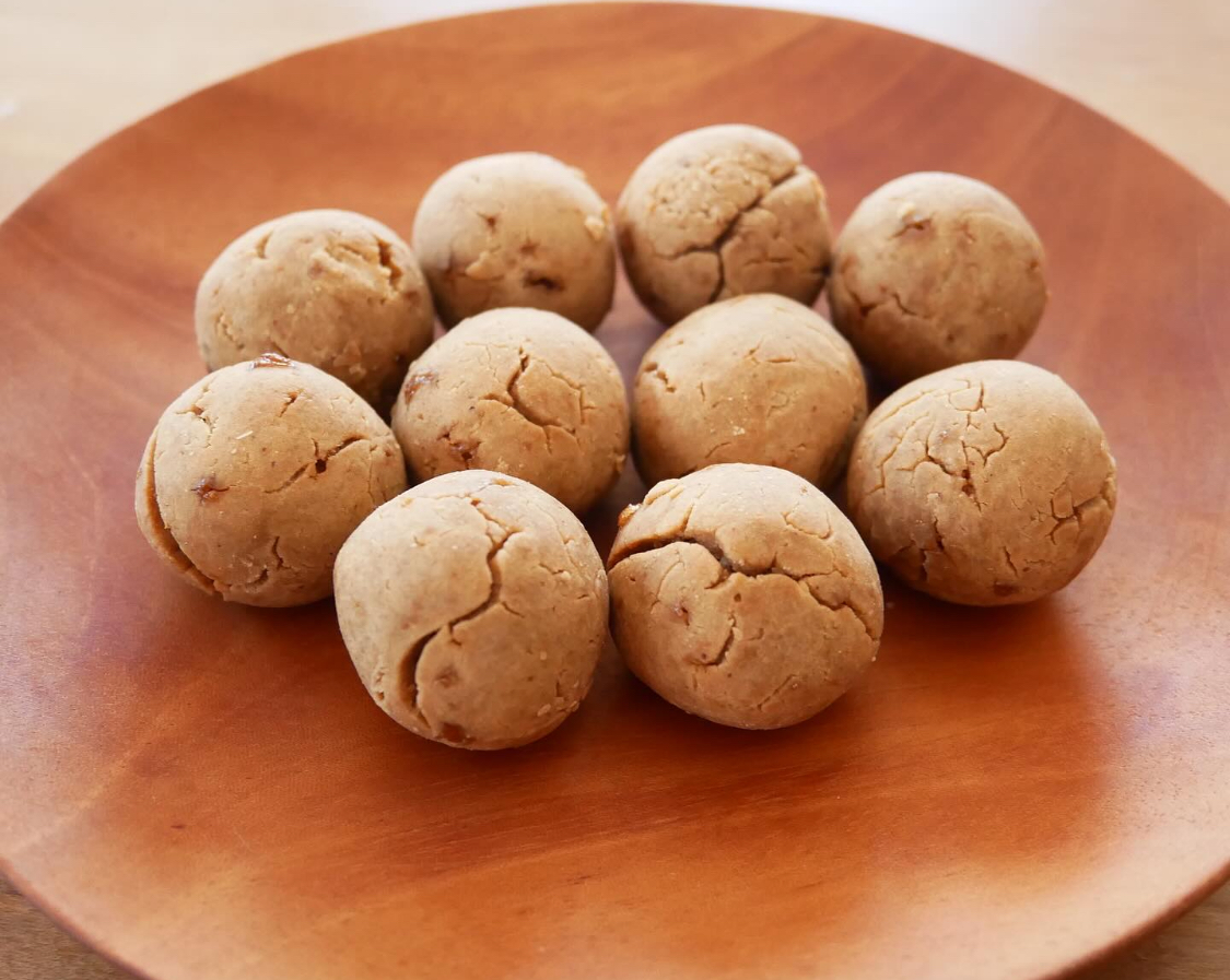 胃の中の余分な水を吸って元気を作りやすくしてくれます。そば粉ときな粉の気力アップ食材に、自然塩を少し入れて、水を抜き引き締める作用を期待します。甘味には、気を補いながら余分な湿を流し出す働きを期待して黒糖を使いました。