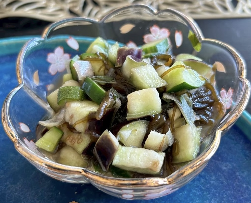 もずくの薬味和え 薬膳レシピ 2025.11.28【作り方】①なす、きゅうり、オクラは粗みじん切りに、紫蘇と茗荷はみじん切りにする。もすくはしっかりと水切りしておく。②①とめんつゆ、酢をよく混ぜ合わせお皿に盛り付ける。印刷 材料:・もずく 50g ・きゅうり 1個 ・紫蘇 4〜5枚 ・茗荷 1本 ・なす 1/2本 ・オクラ 2本 ・めんつゆ 大さじ2 ・酢 小さじ2 調理のポイントや想い:清熱しながら利尿するサッパリしたレシピにしました! 寄稿者: 田邉久美子 関係学校・協会: 中国医学協会 投稿者資格: 中医学検定2級 | 中医学検定3級