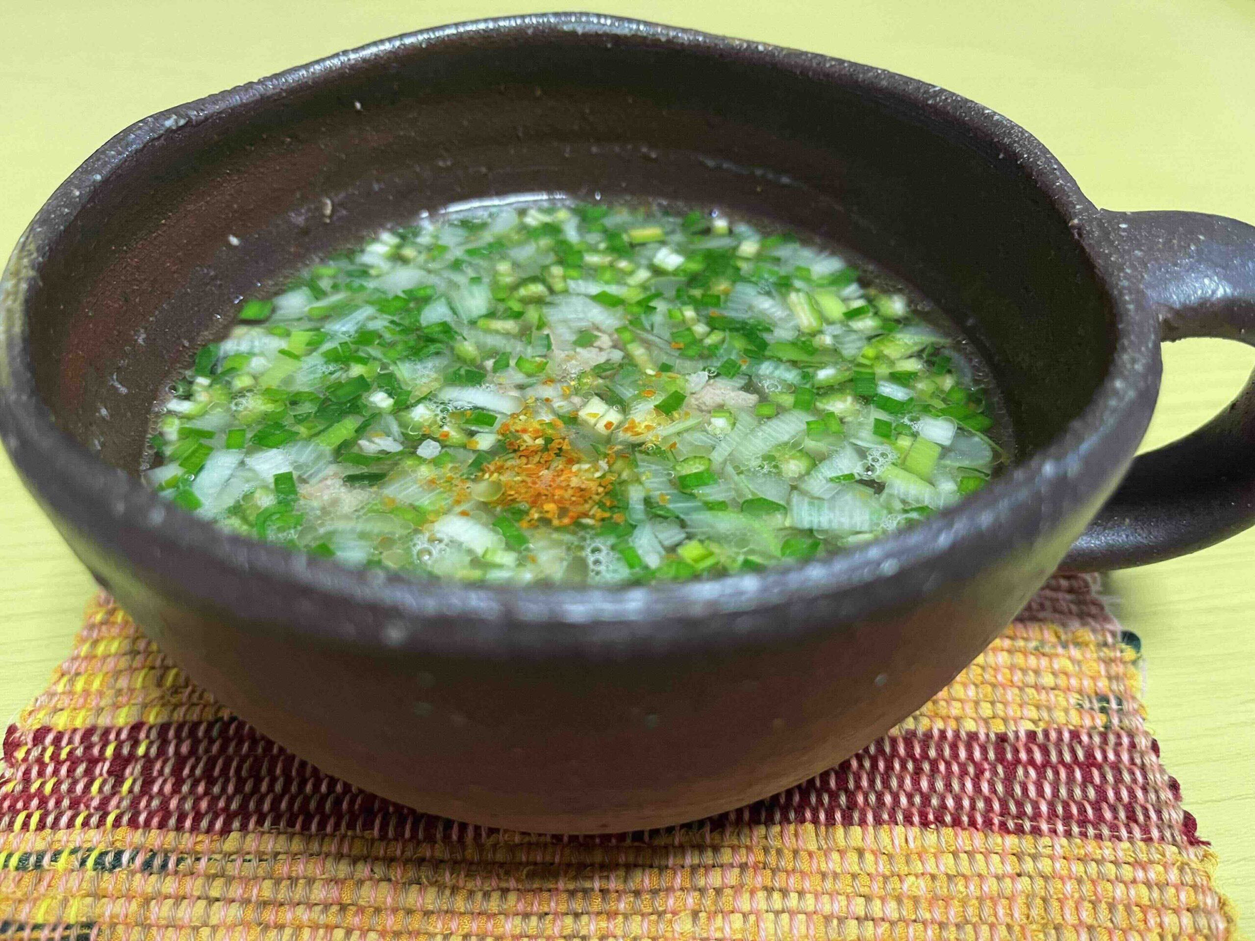 - 沸騰したら火を止め、器に盛り赤唐辛子を飾り完成。