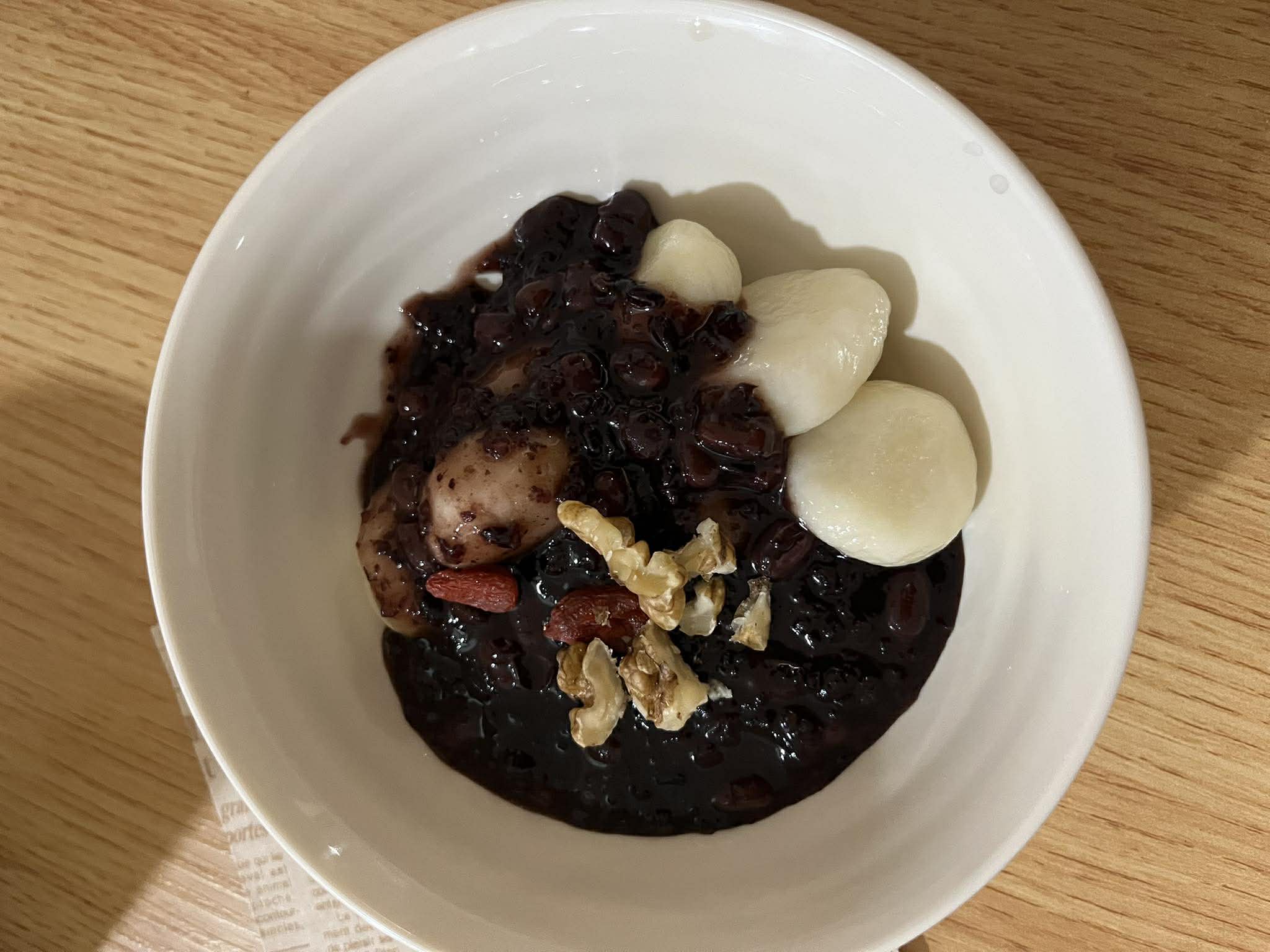 黒米で養血し、小豆で利水、精になる胡桃と枸杞も加え、腎と脾を労わるスイーツです。